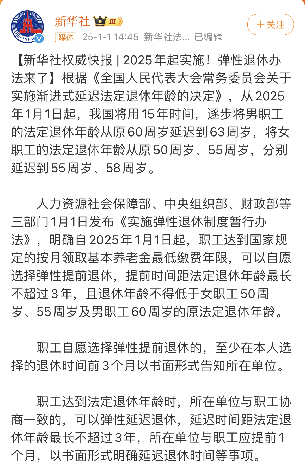 經(jīng)過多年的研究與探討,我國推出了退休最新政策,這一政策在廣泛征求意見的基礎(chǔ)上,經(jīng)過多次修改和完善,最終得以實(shí)施,標(biāo)志著我國退休制度的進(jìn)一步改革,為應(yīng)對老齡化社會提供了有力支持。