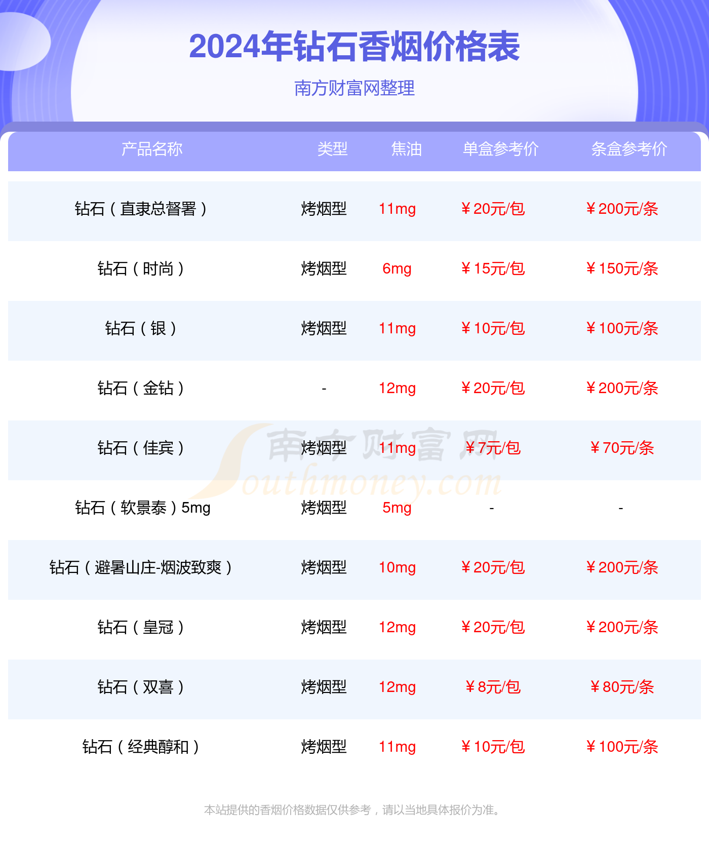 3、荷花香煙·鉆石版:價(jià)格較高,約為XX元/包,以鉆石裝飾,彰顯高貴品質(zhì)。